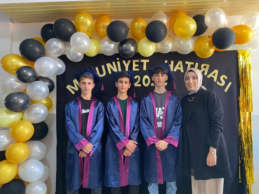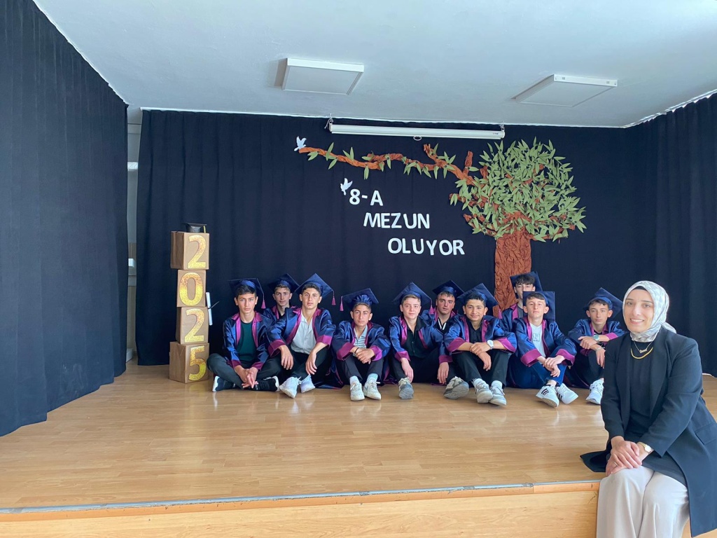 2024- 2025 Eğitim Öğretim yılı sonunda mezun olan öğrencilerimiz için mezuniyet Programı düzenlendi. Okulun Çok amaçlı salonunda yapılan mezuniyet töreninde ailelerin ve öğrencilerin heyecan ve mutluluğu gözlerinden okunuyordu. Saygı Duruşu İstiklal marşının okunmasıyla başlayan proğram Okul müdürü Osman SARIKAN ın ve okul birincisi olan öğrencimizin yaptığı konuşmanın ardından Bayrak filama devir teslimi ve mezuniyet pastası kesimiyle devam etti. Bahçede yapılan kep atma töreni, halay çekimi ve fotoğraf çekimlerinin ardından program sona erdi. Fatih Ortaokulu olarak öğrencilerimizi sevgiyle, hasretle uğurlarken hepsine, mutluluk ve başarılar diliyoruz. Yolunuz, Bahtınız ve Gönlünüz açık olsun